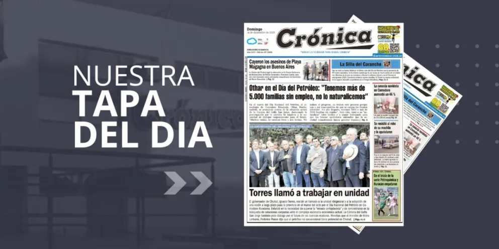 Domingo 14 de diciembre de 2025 Redaccion2 diciembre 14, 2025 Acerca del autor Redaccion2 Editor Ver todas las entradas Navegación de entradas Anterior: Racing vs Estudiantes, por la final del Torneo Clausura: la joya de Maravilla Martínez para el gol que destrabó el partido en Santiago del EsteroSiguiente: El Municipio trabaja en un desprendimiento registrado en el puente de Km 4 Deja una respuesta Cancelar la respuestaTu dirección de correo electrónico no será publicada. Los campos obligatorios están marcados con *Comentario * Nombre * Correo electrónico * Web Guarda mi nombre, correo electrónico y web en este navegador para la próxima vez que comente. Δ Noticias Similares La canasta navideña en Comodoro aumentó un 46% Redaccion2 diciembre 14, 2025 0 El Municipio trabaja en un desprendimiento registrado en el puente de Km 4 Redaccion2 diciembre 14, 2025 0 Luque: «Estoy a disposición de gestionar junto al gobernador desde el rol que nos toca para pelear todos juntos por Chubut» Redaccion2 diciembre 13, 2025 0