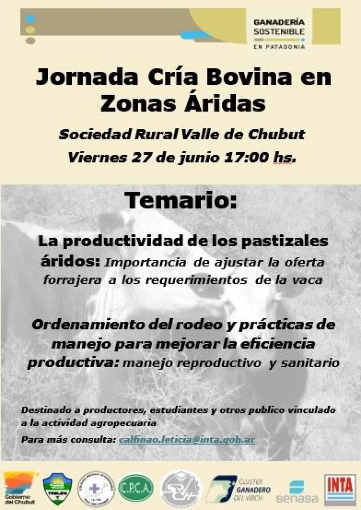 Este viernes 27 de junio, Trelew será sede de una jornada técnica sobre Cría Bovina en Zonas Áridas, destinada a productores y profesionales del sector agropecuario, con el objetivo de brindar herramientas para una ganadería sustentable y eficiente.