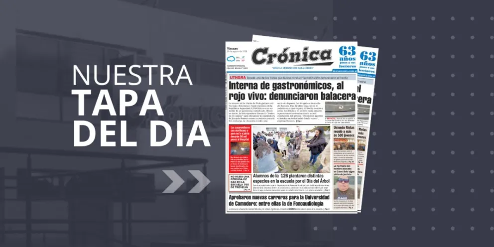 Viernes 29 de agosto de 2025 Redaccion2 agosto 29, 2025 0 About The Author Redaccion2 See author's posts Navegación de entradas Anterior: River no convence pero avanza y necesitó otra vez de un Armani colosal para ganarle por penales a Unión por la Copa ArgentinaSiguiente: Aprobaron por mayoría simple la prórroga de Transporte Público Deja una respuesta Cancelar la respuestaTu dirección de correo electrónico no será publicada. Los campos obligatorios están marcados con *Comentario * Nombre * Correo electrónico * Web Guarda mi nombre, correo electrónico y web en este navegador para la próxima vez que comente. Δ Noticias Similares Invitan a participar de la Exposición Agrícola, Ganadera y Carnero a Campo en Sarmiento Redaccion2 marzo 7, 2026 0 Aeroevacuación de urgencia: trasladaron a un marinero indonesio a Comodoro Rivadavia Redaccion2 marzo 7, 2026 0 Trump propuso una coalición militar en la cumbre Escudo de las Américas Redaccion2 marzo 7, 2026 0